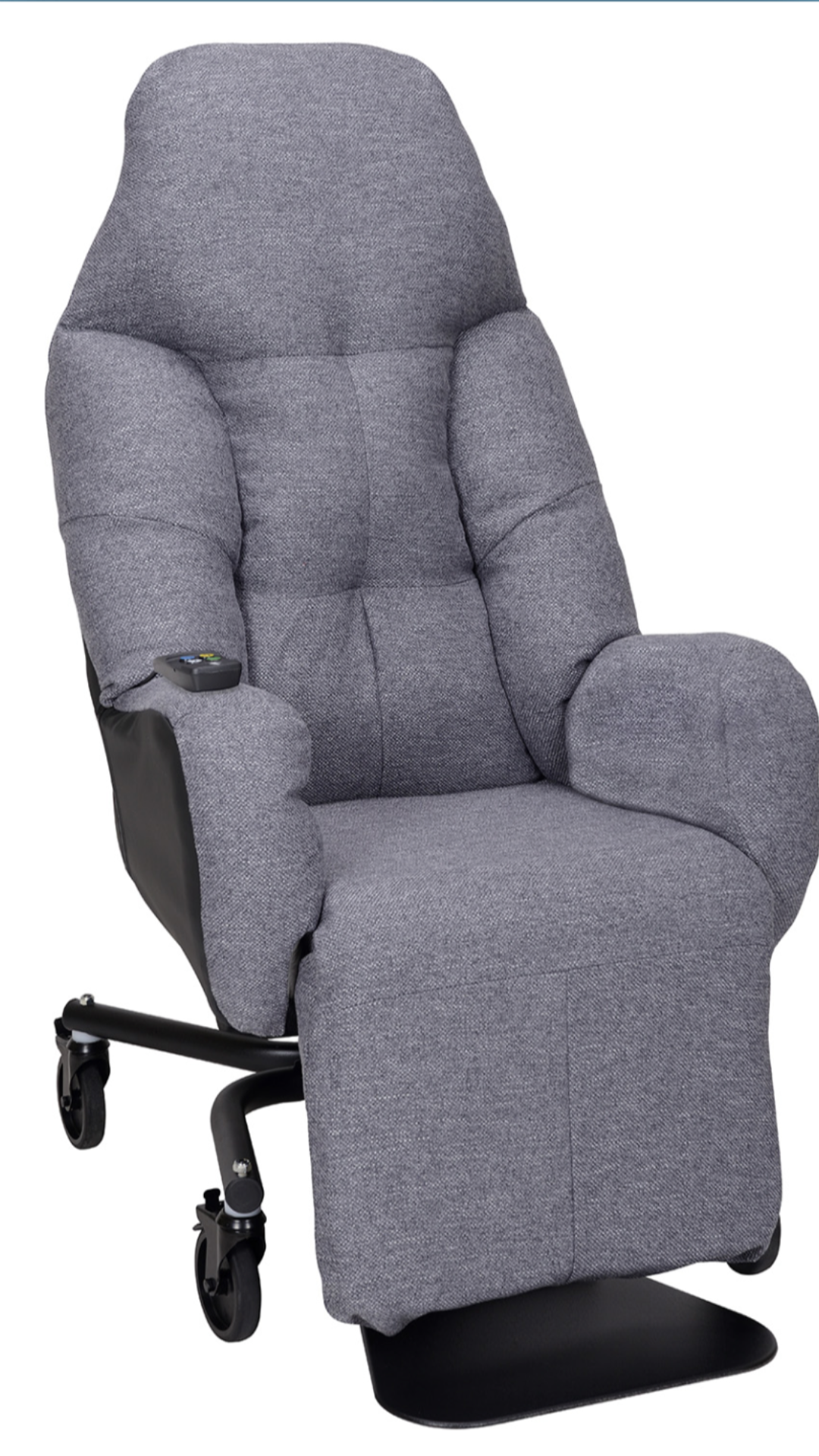 Le dossier, l’appui tête, les accoudoirs sont composés de couettes moelleuses, amovibles, remplaçables et lavables 30¬∞C permettant un allégement des points de pression.