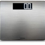 Le pèse personne élégant avec un revêtement en acier inoxydable anti-traces de doigts.