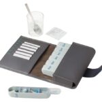7 espaces de stockage pour les formes galéniques (types sachets en poudre) ou porte-cartes pouvant intégrer Carte Vitale. carte mutuelle. etc.