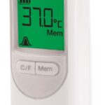 Thermomètre Pour infrarouge tympanique avec protections de sonde jetables.Le thermomètre mesure la température auriculaire réelle sans ajustement.